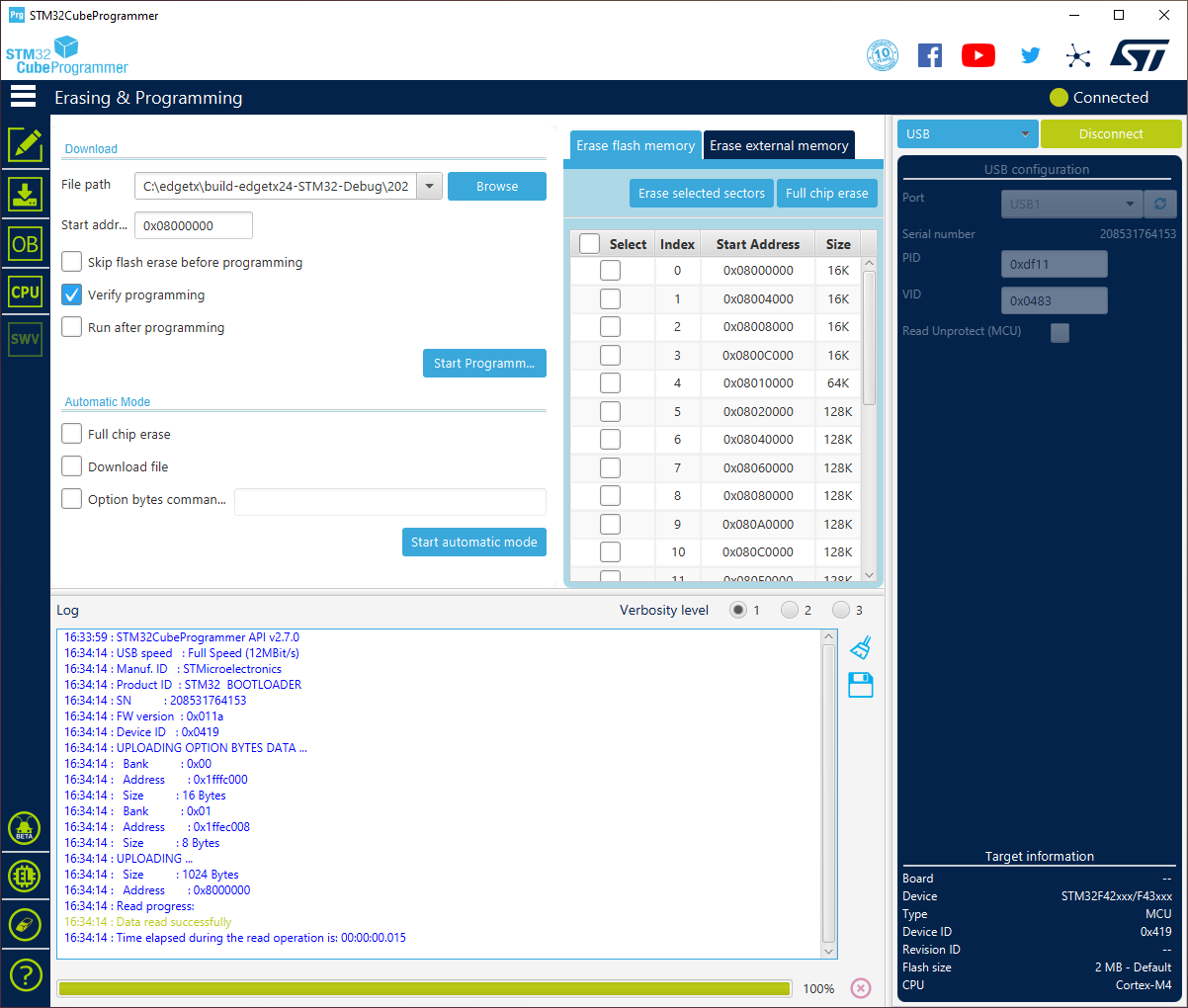 Start Programm...in the middle of the STM32CubeProgrammer.
